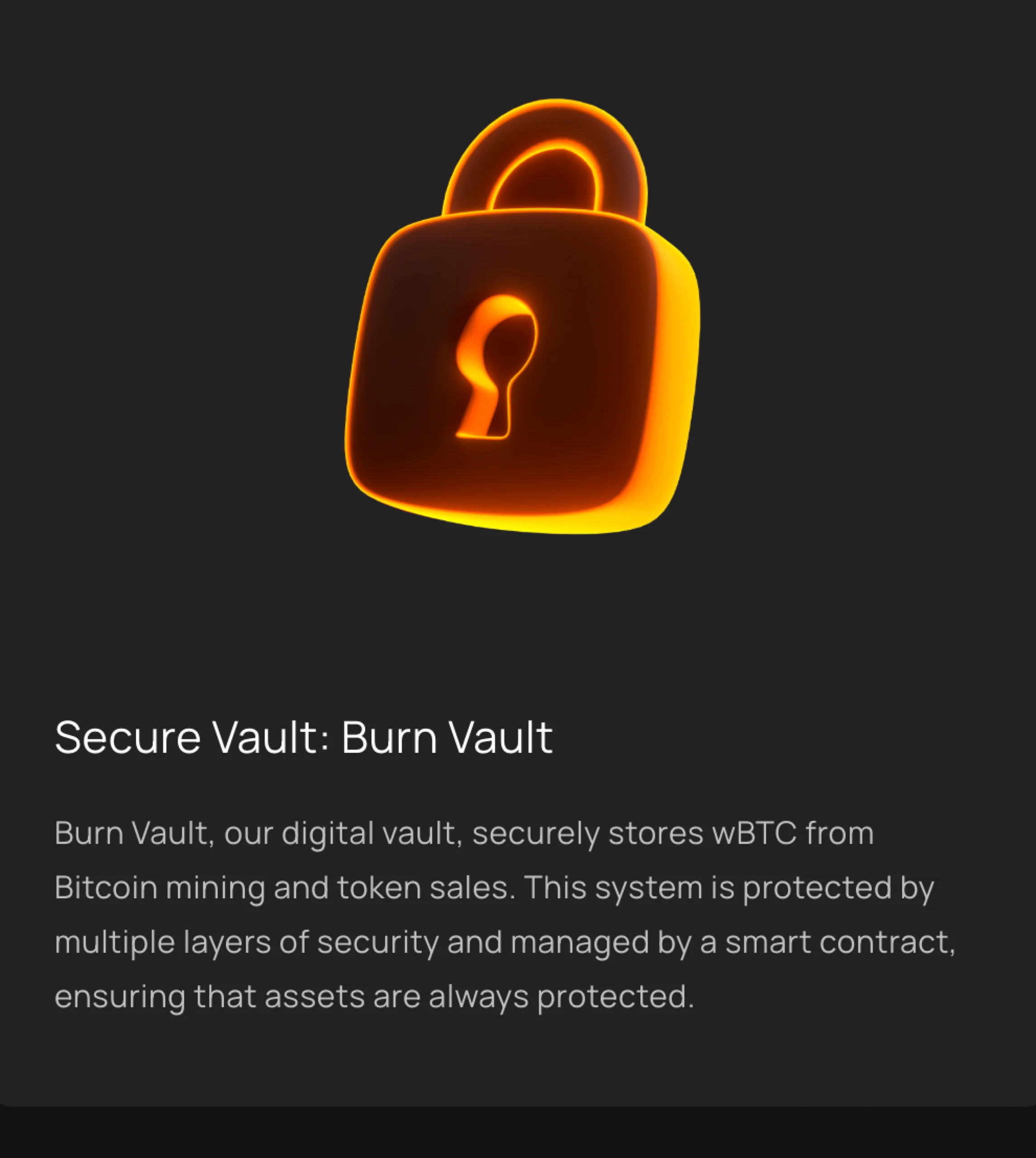 In other words, our Burn Vault receives daily deposits of WBTC, converted from the BTC mined by our own operations. This creates a real BTC price floor that increases every single day.
