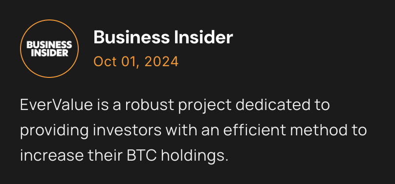 EverValue (EVA) is a blockchain-based ecosystem operating on the Arbitrum network. It combines real Bitcoin mining with a deflationary token model, offering a unique asset: a token with a guaranteed BTC floor price, rising daily. Since the total supply of EVA has already been fully issued and no new tokens can ever be created, there is no risk of dilution. Meanwhile, new Bitcoin flows into the Burn Vault — a smart contract audited by Hacken and CertiK— increasing the backing per token every day. The result is simple: with more BTC and fewer tokens in circulation, EVA’s minimum price in BTC rises daily.